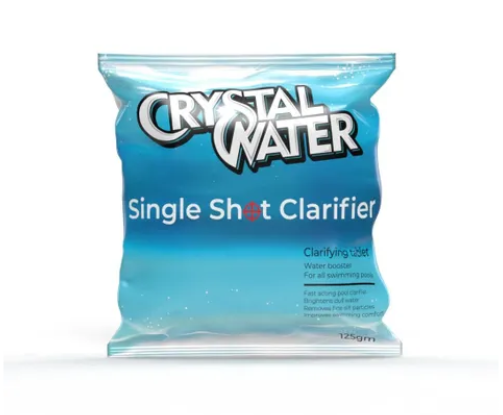 Crystal Water Single Shot Clarifier removes fine particles that cannot be caught by filtration alone and clarifies dull water. This clarifier block is shaped like a hockey puck and you can put it in your skimmer basket (or a floating dispenser). it is a fast acting pool clarifier that clears dull or cloudy water.